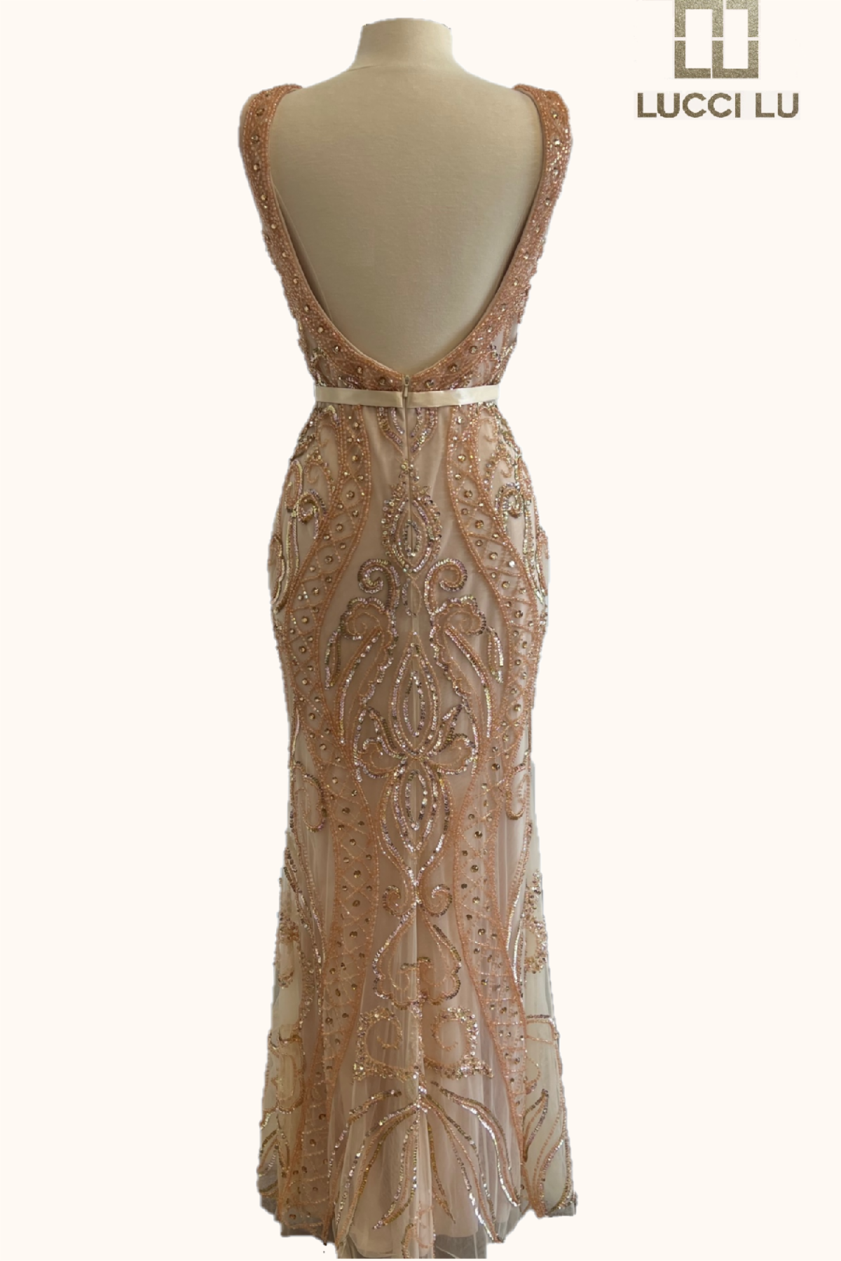 - The fabric in this Abby Paris Prom and Evening by Lucci Lu dress is Embroidered Tulle