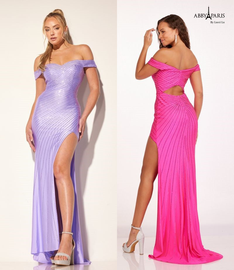 - The fabric in this Abby Paris Prom and Evening by Lucci Lu dress.
